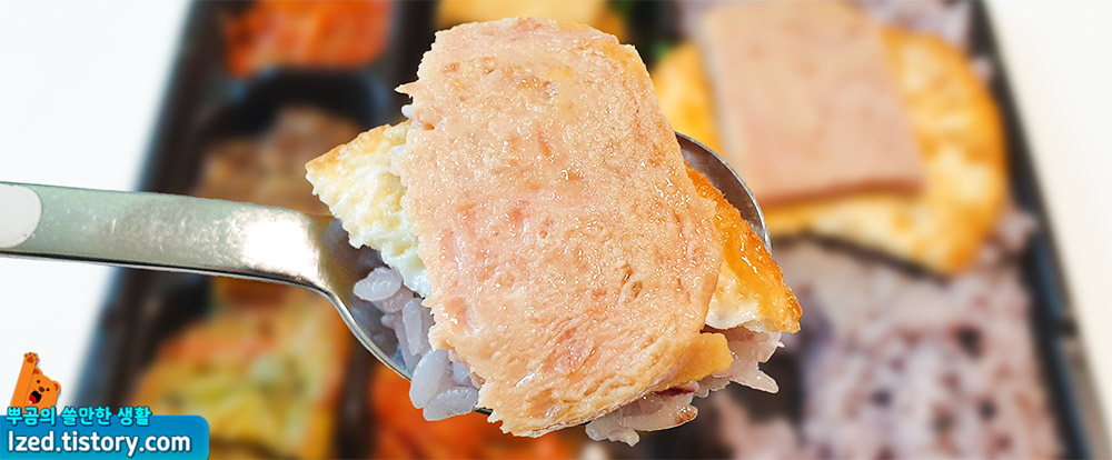 따끈한 스팸 한조각에 계란후라이까지..