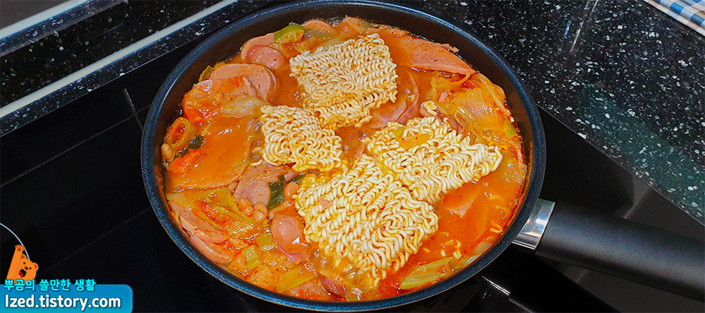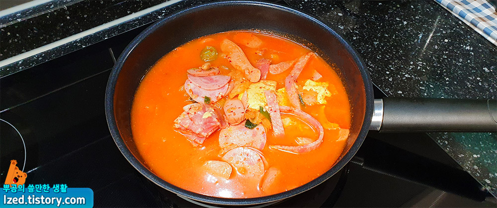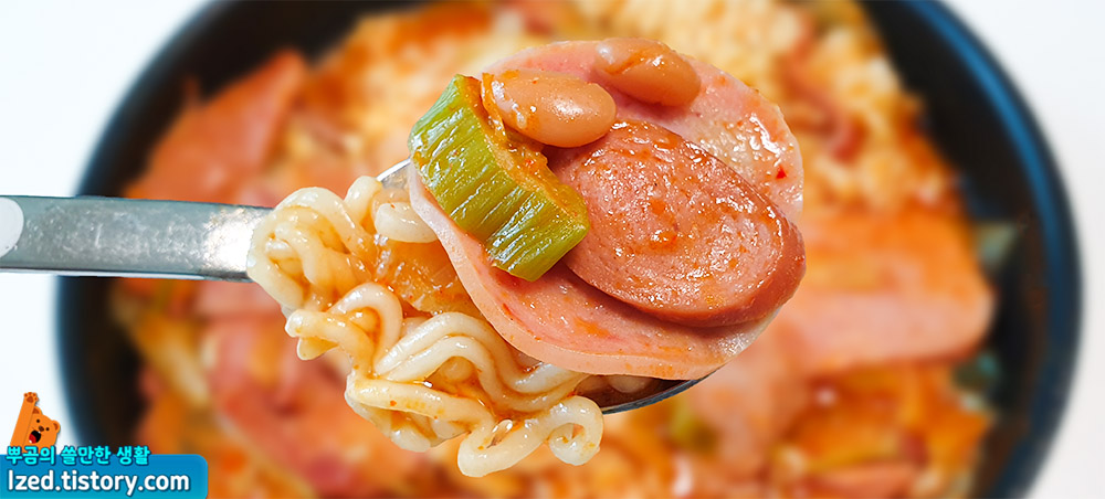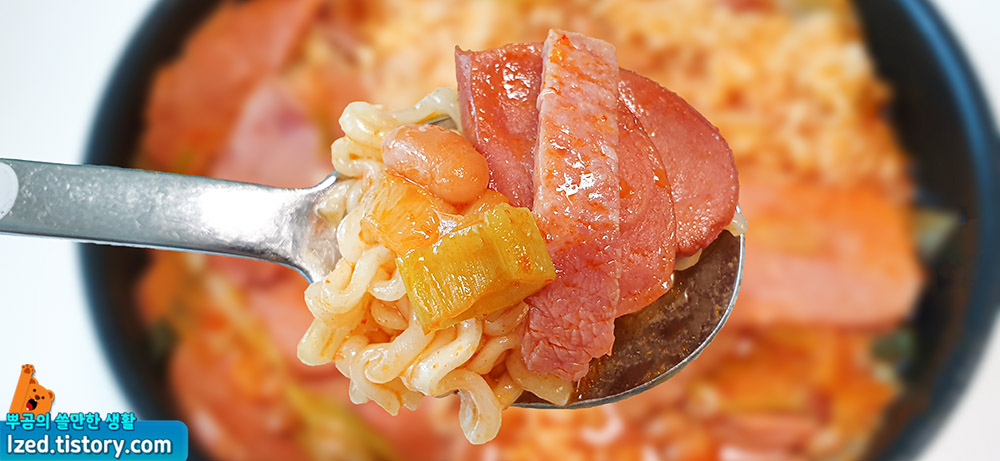 부대찌개 특유의 짭쪼름한 맛에