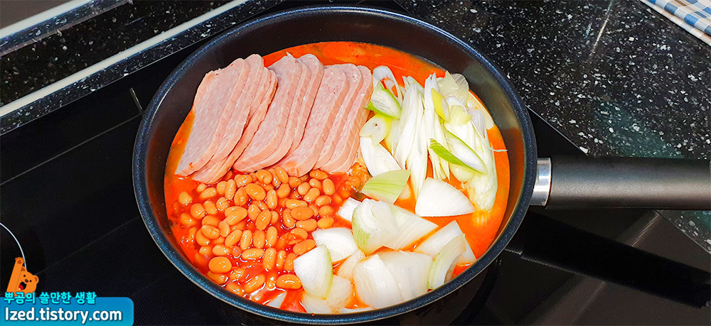 부대찌개를 냄비에 넣고