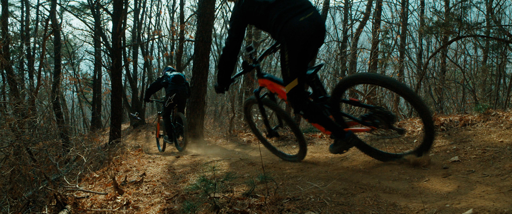 초반의 산악바이크의 라이딩 장면은