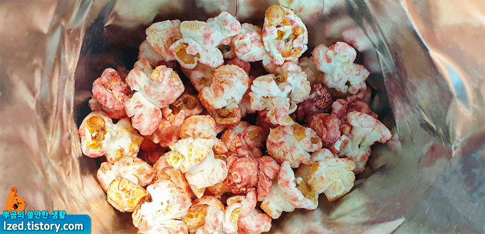기존의 딸기맛 팝콘과 비슷한 느낌이고