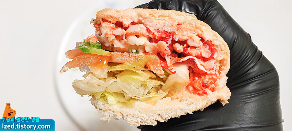 랍스터 통살이 가득 들어있는 랍스터 샌드위치