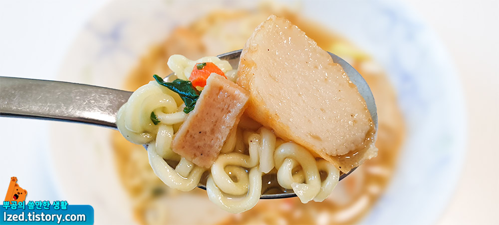 어묵이 들어간 라면의 느낌이