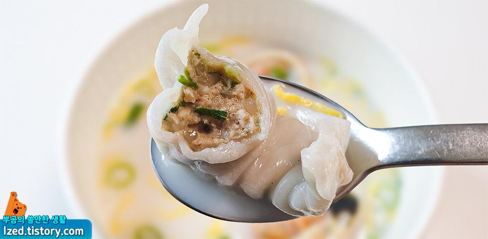 쫄깃하게 씹히는 만두피 뒤로