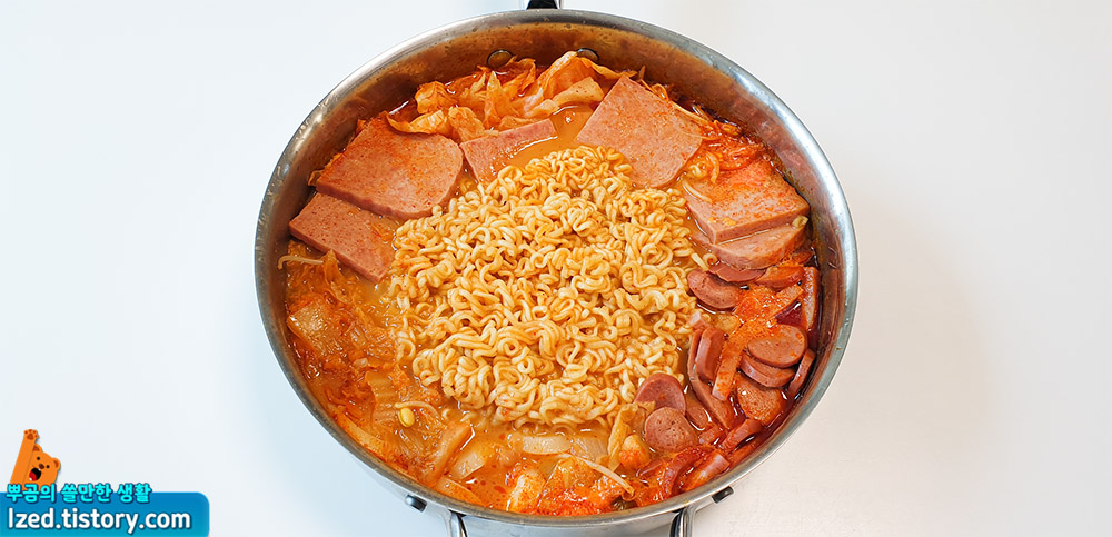 자, 이제 간편하게 끓인 부대찌개를