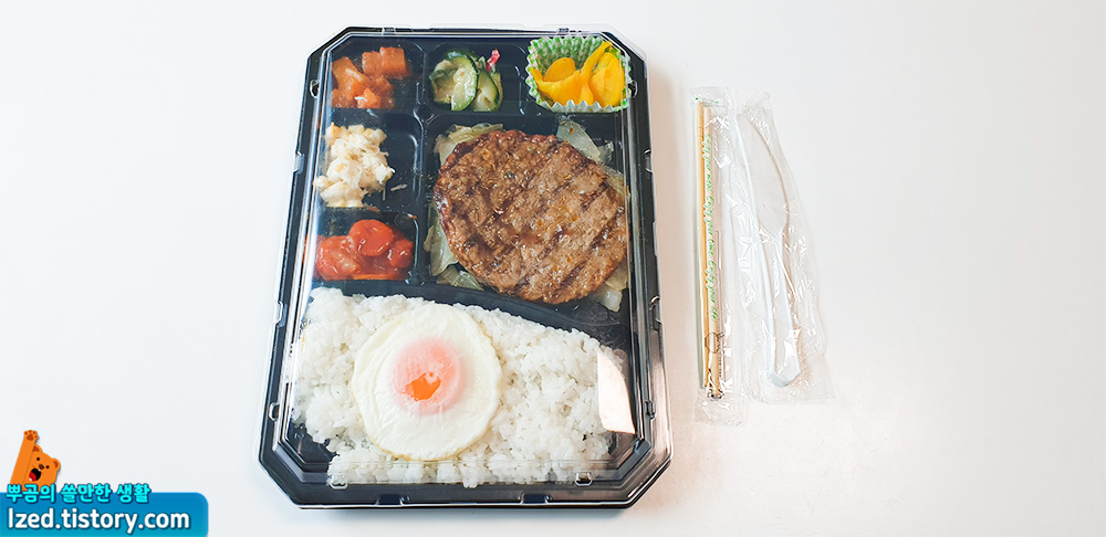 들어있는 왕떡갈비 한판 도시락을