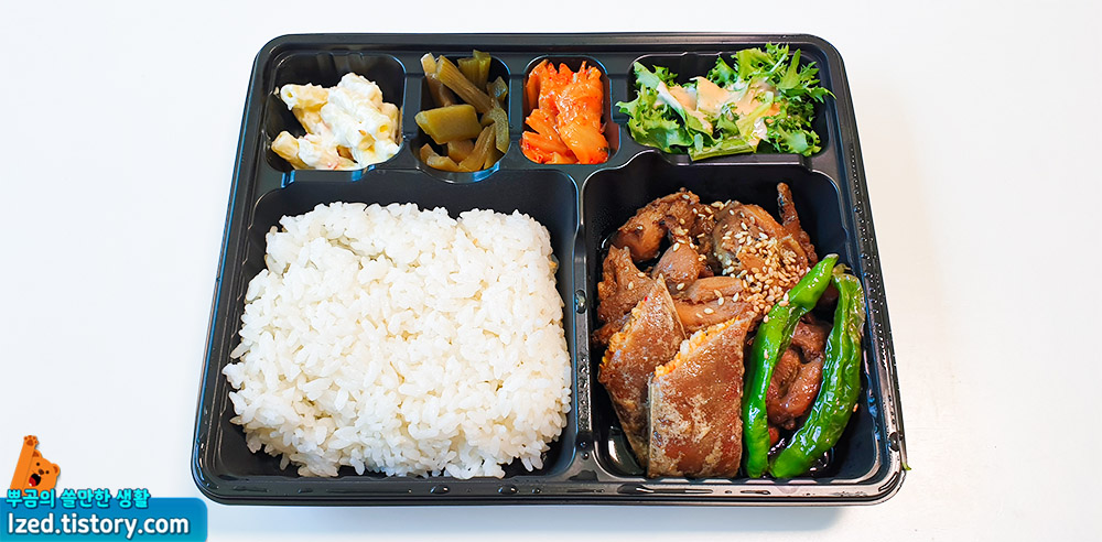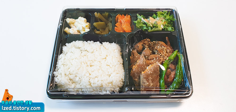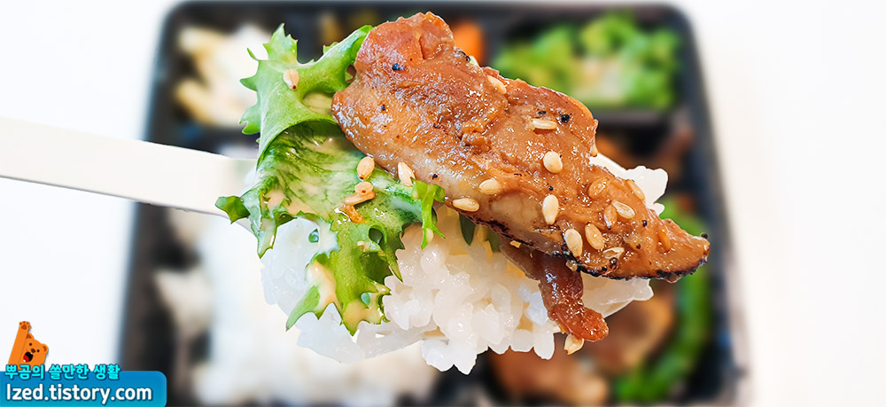 간장맛 도시락은 숯불에 구운 닭갈비부터