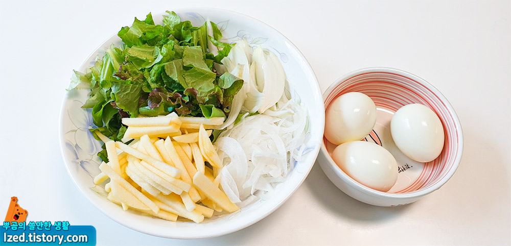 집에있던 상추나 양파, 사과, 계란을