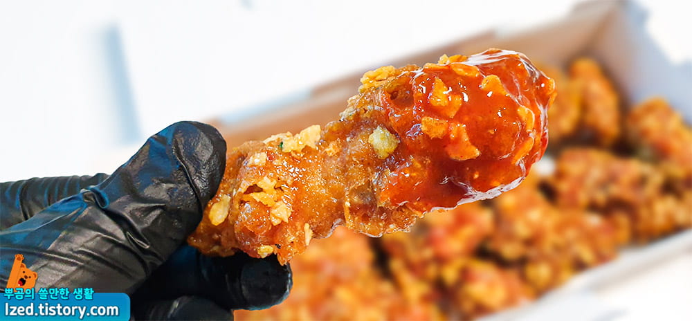 바삭한 옥수수를 뿌린 교촌의 단짠한