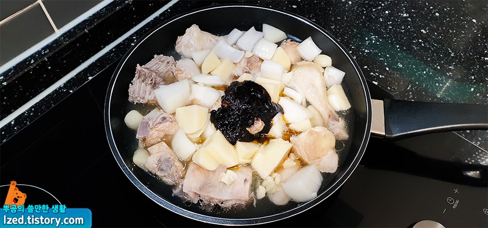 오늘은 여기에 닭 1마리와 감자, 양파 등