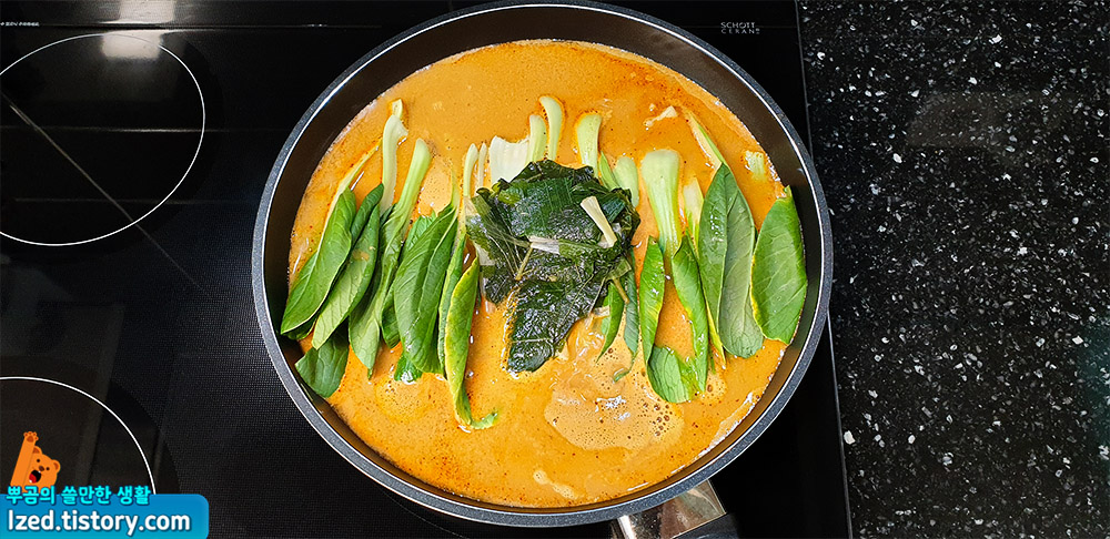 야채를 넣고 강불로 끓이다가 끓으면
