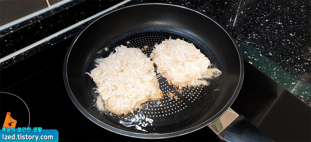 ② 돈까스를 넣은 후 5분뒤 뒤집어서