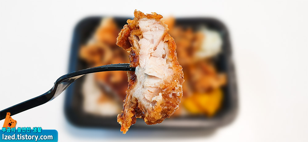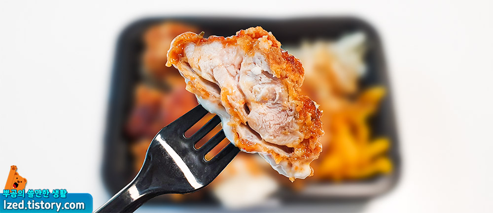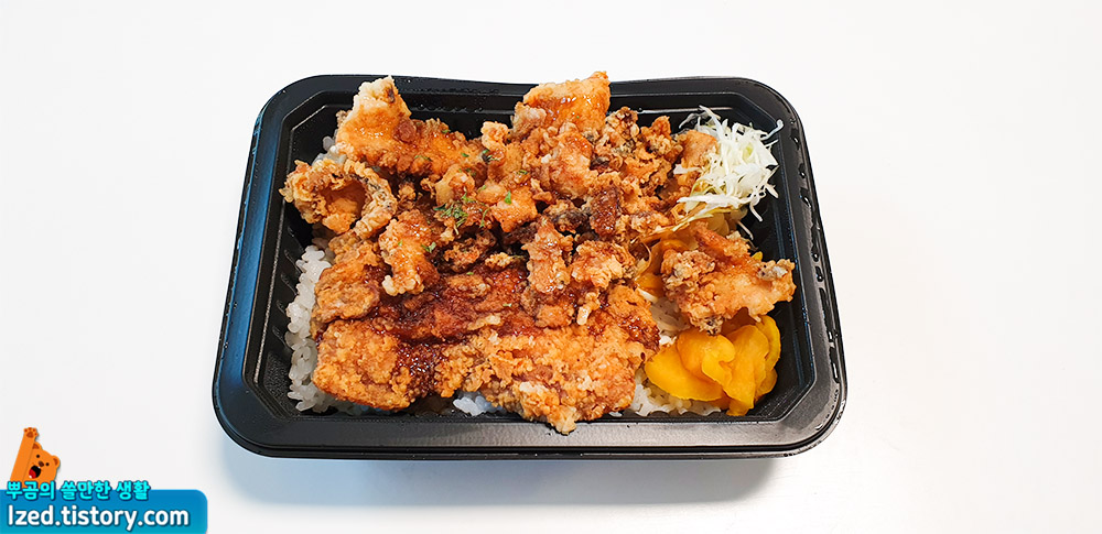 올라가있는 치킨 도시락으로 도시락 하나를 다 먹으면