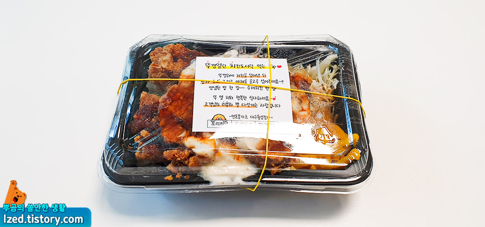 뚜껑열린 치킨도시락 특제양념