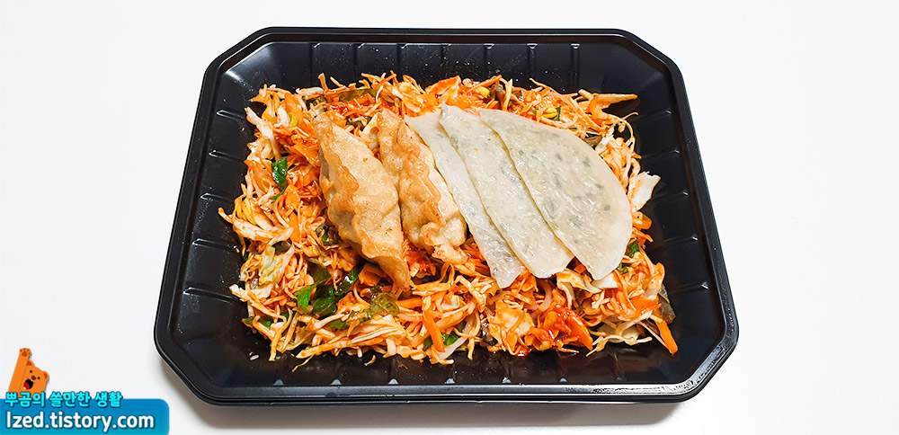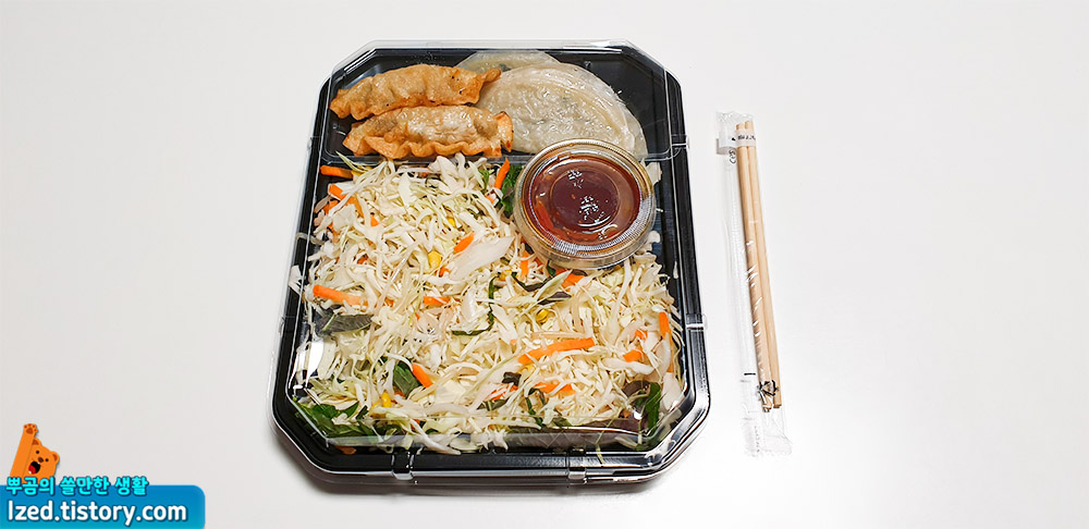 만두를 넣은 비빔만두 도시락이라고 볼 수 있는데요.