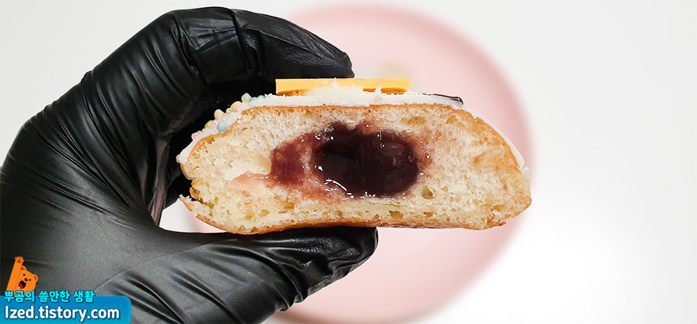 이 도넛은 안쪽에 팥 필링이 들어있다고 하는데요.