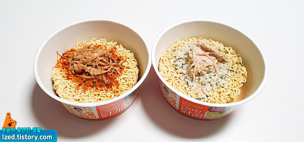 다만, 두 라면 모두 닭의 양이 많지 않고 들어있는 닭도