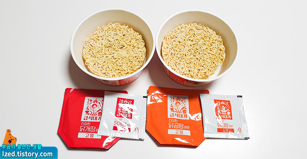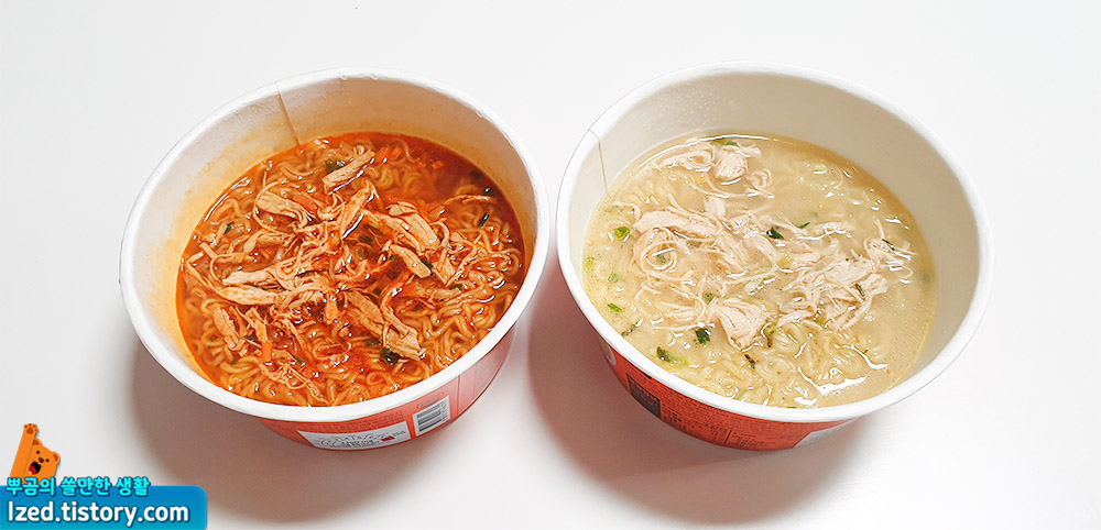 빨간국물의 닭개장 라면, 뽀얀국물의 닭곰탕 라면이