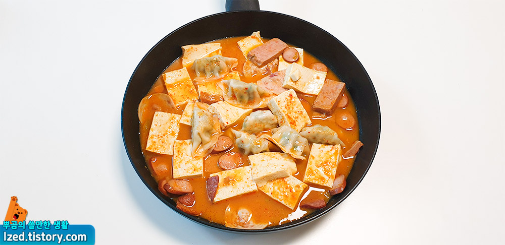 이제 완성된 부대찌개를 살펴보게되면, 집에있던 두부와