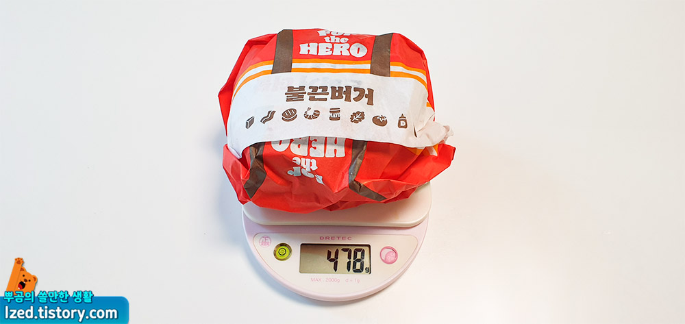 다만, 버거를 들어보면 느껴지듯이 400~500g 사이의