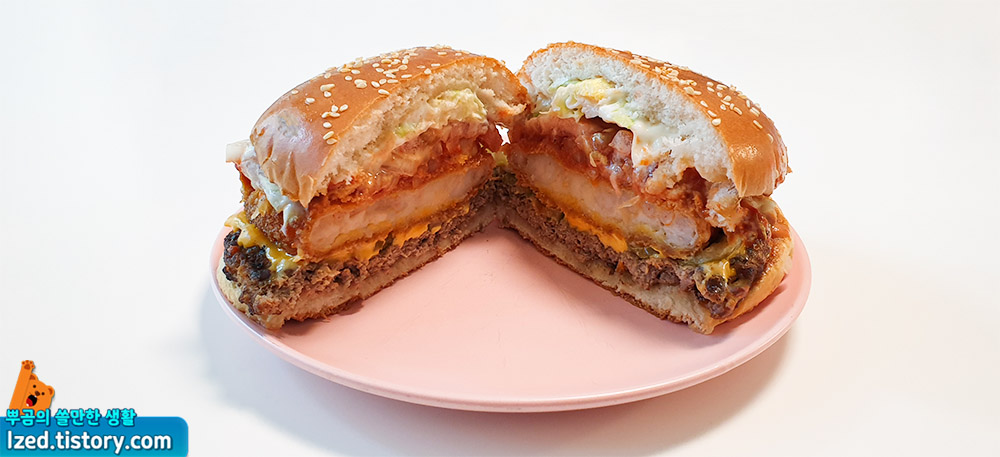 새우패티와 쇠고기패티의 담백함이 풍부하게 잘