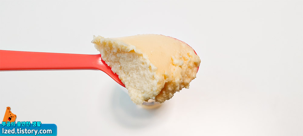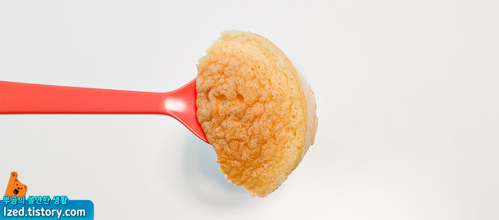 윗부분은 살짝 떠먹어서 맛을 보게되면, 폭신하고