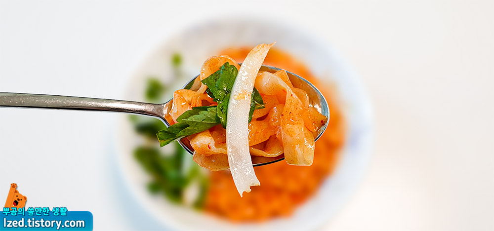 비빔장때문인지 맛이 조금 더 진하게 느껴지고 톡톡