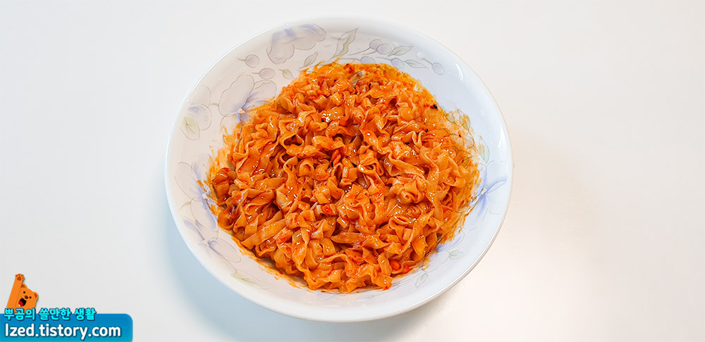완성된 배홍동 칼빔면을 살펴보면 넓직한 칼국수면에