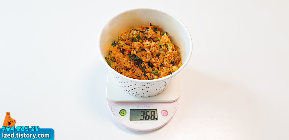 약 370g으로 비빔밥 용기를 생각한다면 350~370g 정도