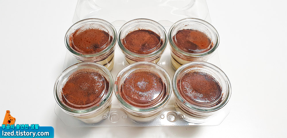 티라미수 케이크가 들어있는 유리컵의 경우, 뚜껑 부분은