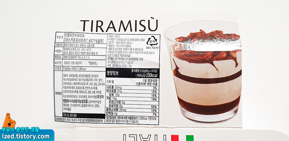 85g의 티라미수 케이크가 6개 들어있어 총중량 510g