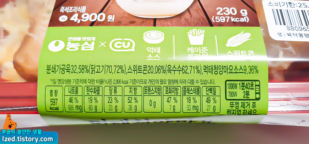 칼로리는 높아서 597kcal 정도 되니 이 부분은