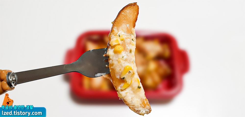 콘치즈가 적절히 녹아서 고소한 향과 함께 적당히 익힌