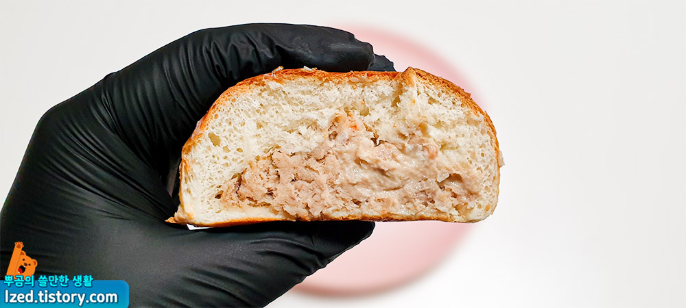 빵에 가득 들어있는 참치와 적당히 섞인 마요네즈가