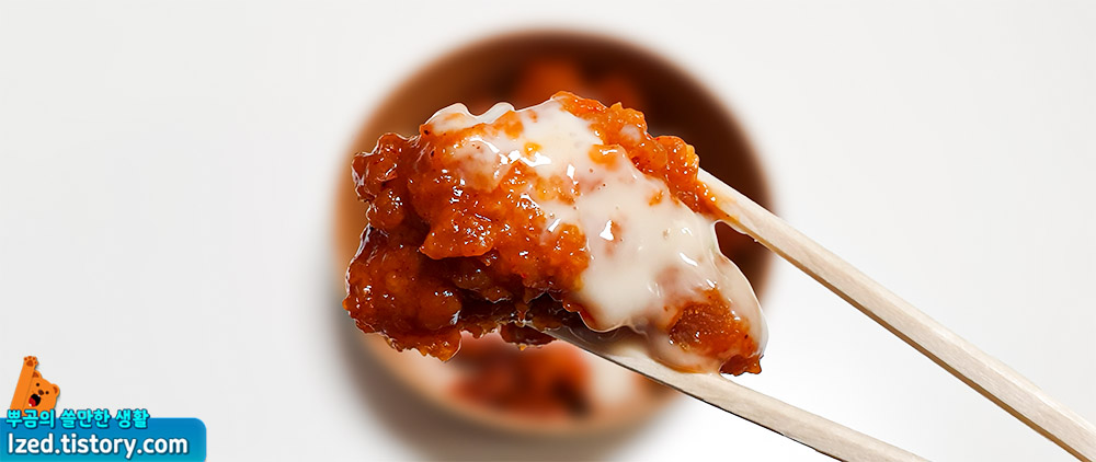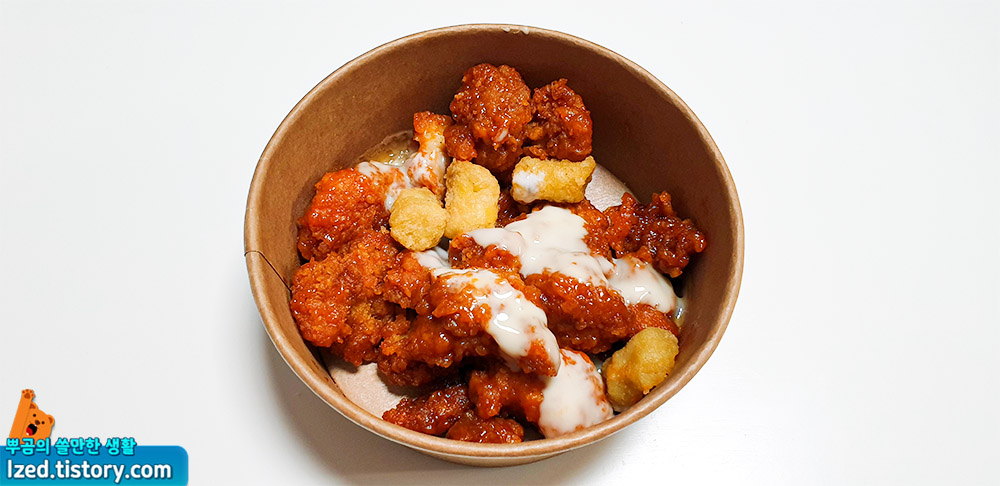 해쉬브라운, 양념치킨에 슈프림 마요 소스가 뿌려져