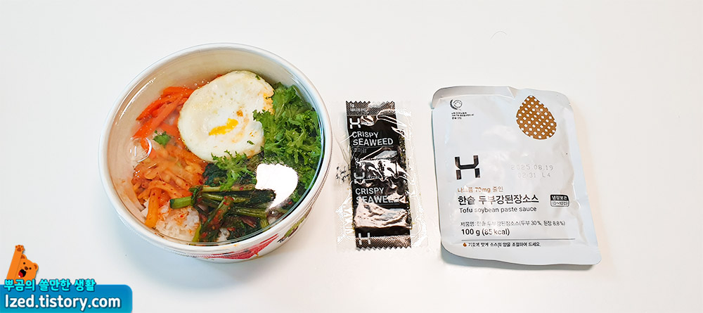 본품과 조미김, 두부강된장 소스로 구성되어 있었는데