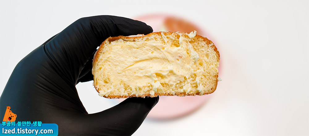 이제 반을 잘라 안을 살펴보게 되면, 우유생크림 도넛은