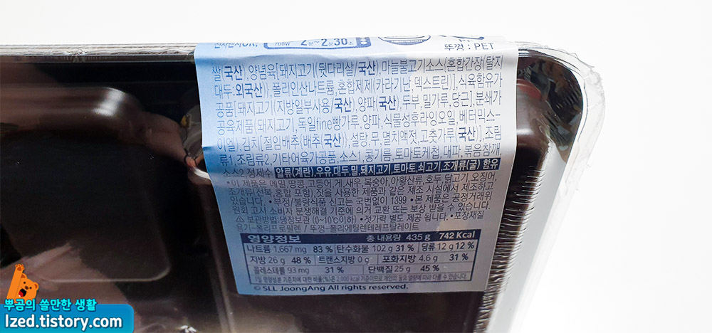 칼로리는 높은 편으로 742kcal의 열량을 가지고 있어