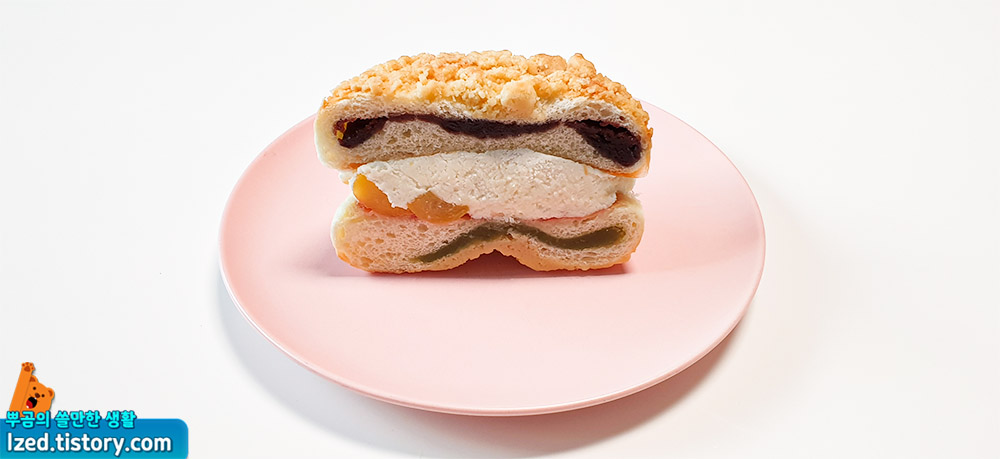 달콤하면서도 고소한 소보로에 두툼한 빵안에 든 앙금이