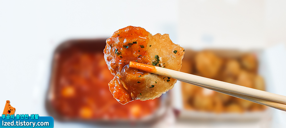 똥집튀김을 떡볶이소스와 양배추와 함께 먹으면
