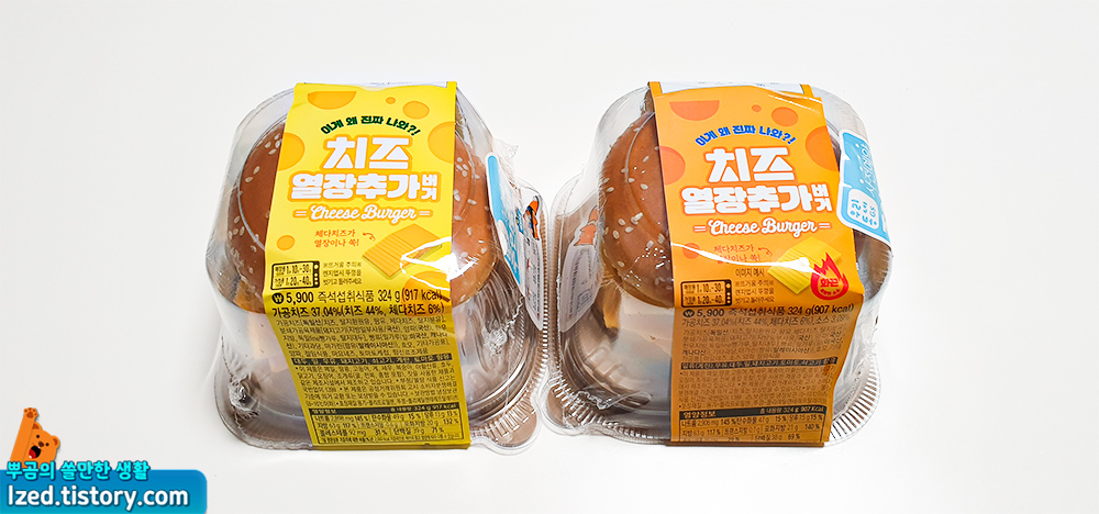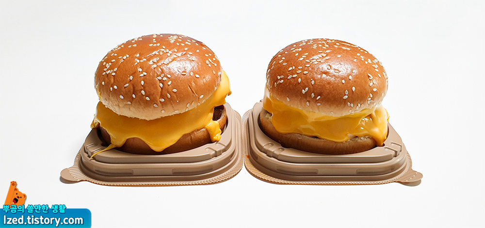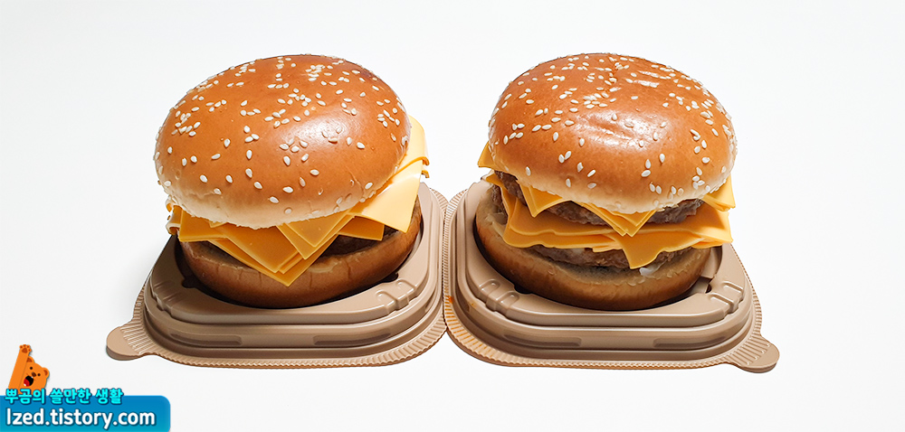 이렇게 완성된 치즈 열장추가 버거 2종을 살펴보면,