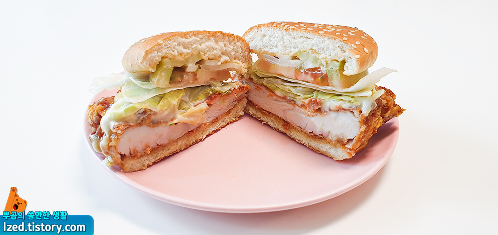 겉모습부터 살펴보게되면, 두툼한 닭가슴살 패티가