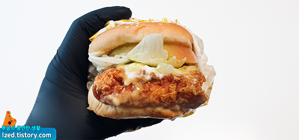 중량이 15% 늘어난 치킨패티를 사용했다고 합니다.
