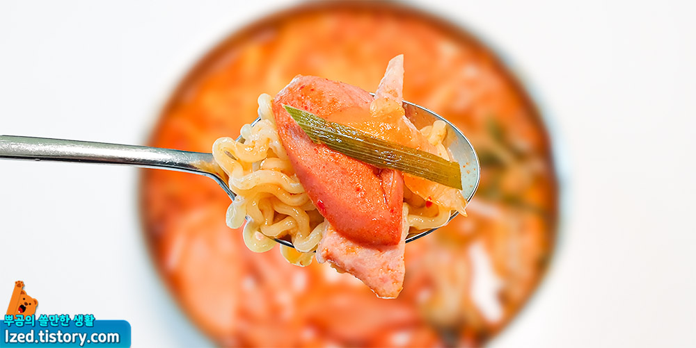 들어있어 고소하면서도 부대찌개 특유의 매콤한 향기가