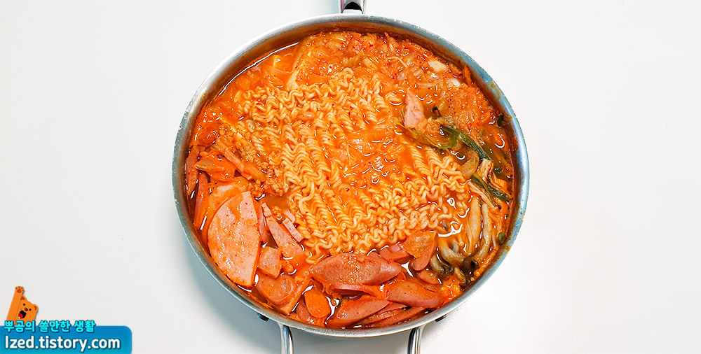 ③ 부대찌개가 끓으면 라면사리를 넣어줍니다.