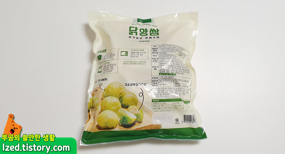 바로 이 녀석인데요. 닭가슴살로 만든 양배추쌈이라는 뜻인 닭양쌈이라고 불리우는 제품입니다. 총 1120g의 닭양쌈이 들어있고 가격은 제가 산 곳에선 13,000원 정도 였네요. 저는 밥심마켓이라는 곳을 통해 주문했으나, 인터넷에 검색하면 다른 곳에서도 많이 팔고 있으니 비교해보시고 사는 것도 좋은 방법일 듯 합니다.