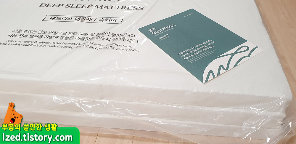 일단 주문하여 도착을 했는데요. 역시나 크기가 엄청나네요.. SS사이즈로 주문을 하였는데도 꽤나 큰 모습을 볼수가 있습니다. 이름도 딥슬립 매트리스인 만큼 얼마나 푹 편하게 잘 수 있는지 기대가 되는데요. 저는 카톡 채널 추가하여 10,000원 할인받고 이것저것 할인 혜택 써서 399,000원에 구매하였습니다.