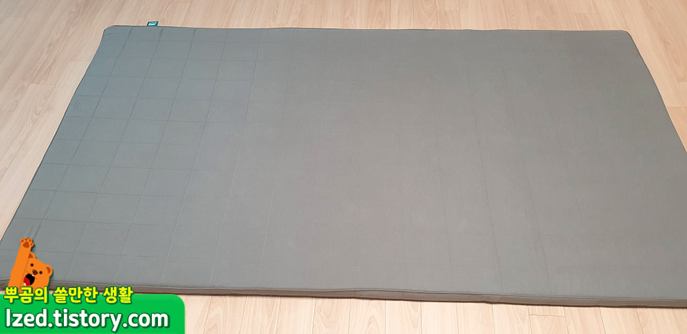 이제 완성되었는데요. 이렇게 얇은 다른 토퍼나 매트리스의 경우는 솜이 금방꺼지거나, 메모리 폼이 일정부분만 푹 꺼지는 등의 문제점이 있었는데요. 이 녀석은 어떨지 한번 사용을 해봐야 겠죠?