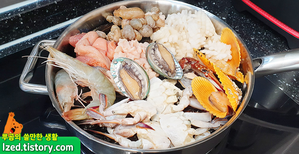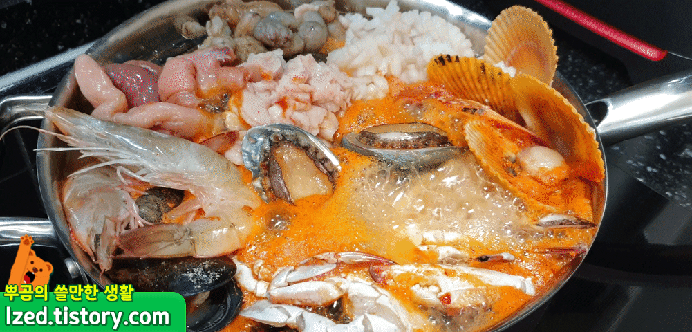 각종 해물과 해물탕 양념으로 구성되어 있는
