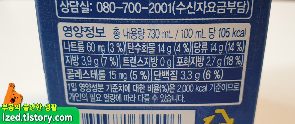 100ml당 105kcal의 칼로리를